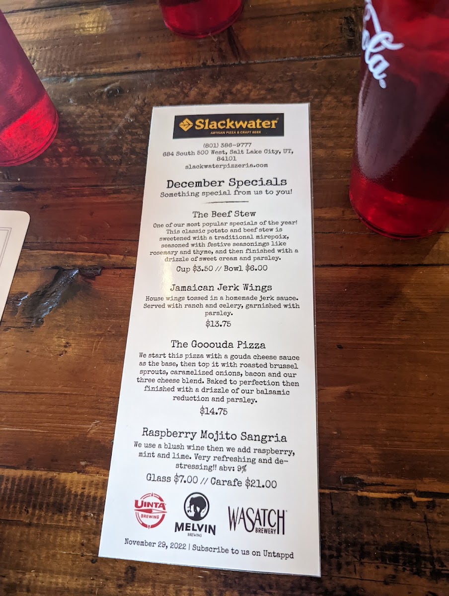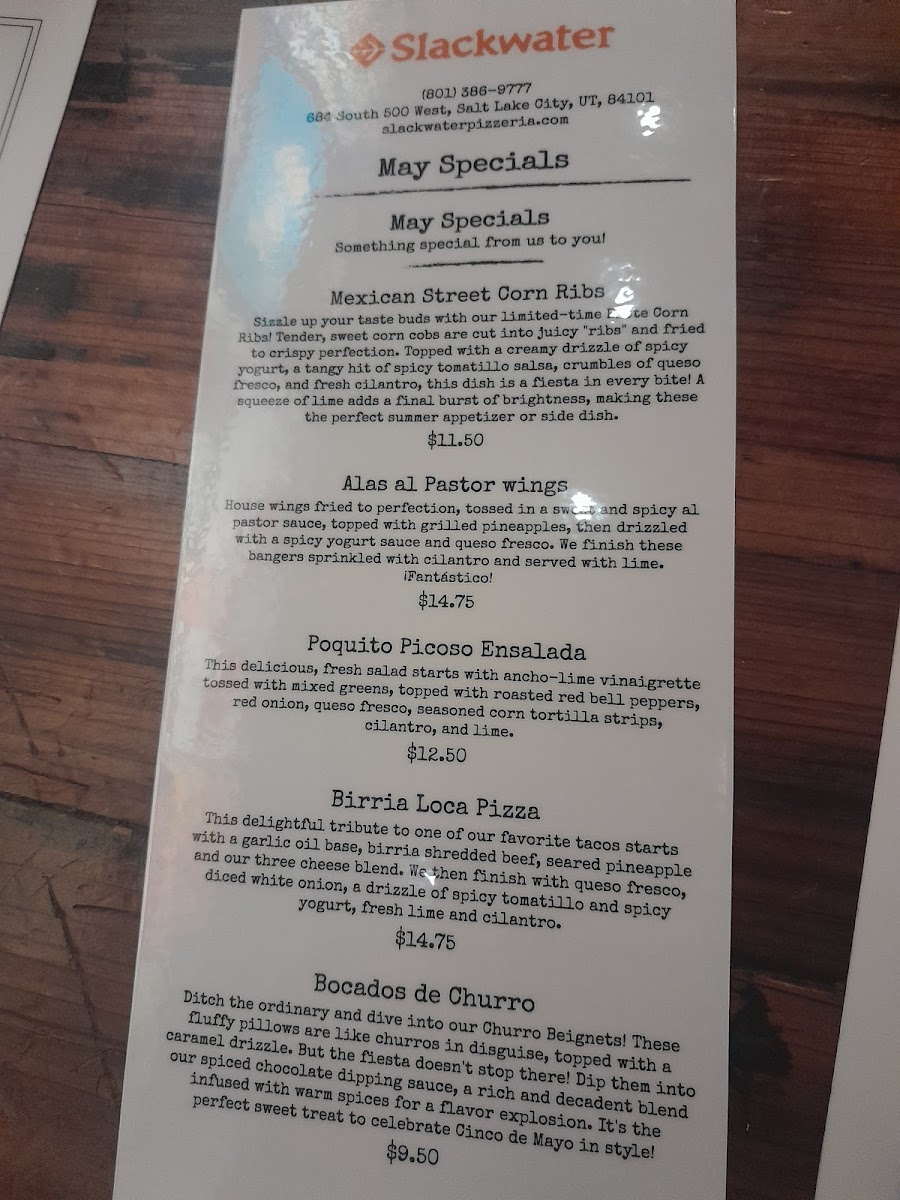 Welcome to Slackwater Pizza SLC, a gem located in the heart of Salt Lake City. With an extensive menu that caters to pizza enthusiasts and brunch lovers alike, Slackwater stands out for its creative flavor combinations and vibrant atmosphere.